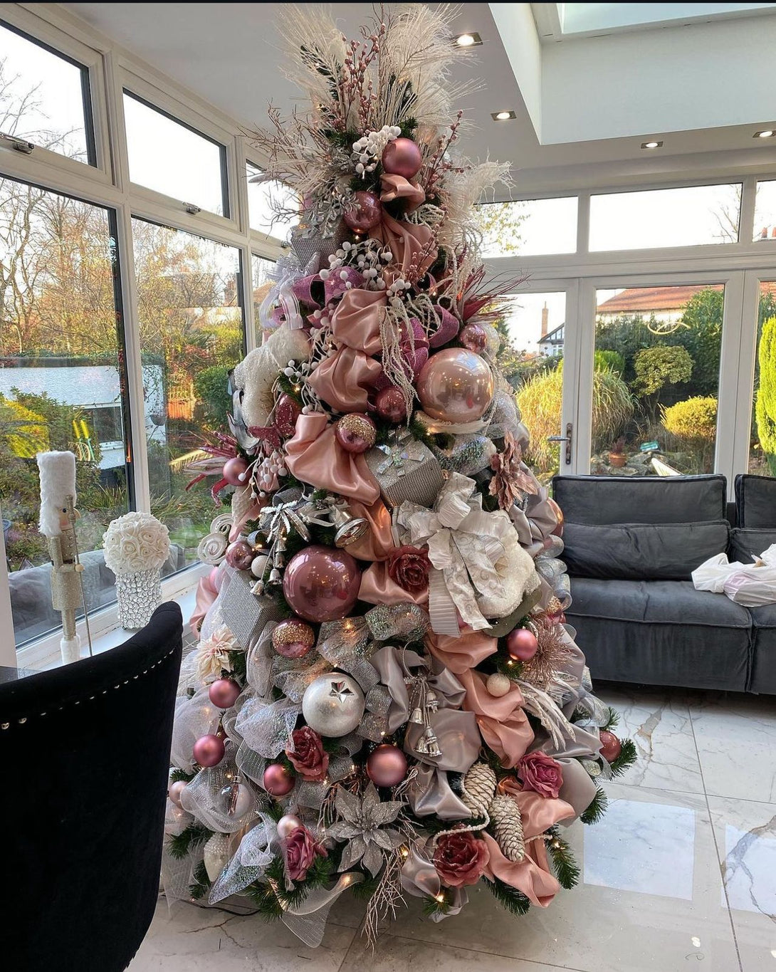 12 Galhos de Berries e Ramos Brancos: Ramos delicados brancos e prateados que adornam a árvore, criando uma aparência gelada e festiva.
